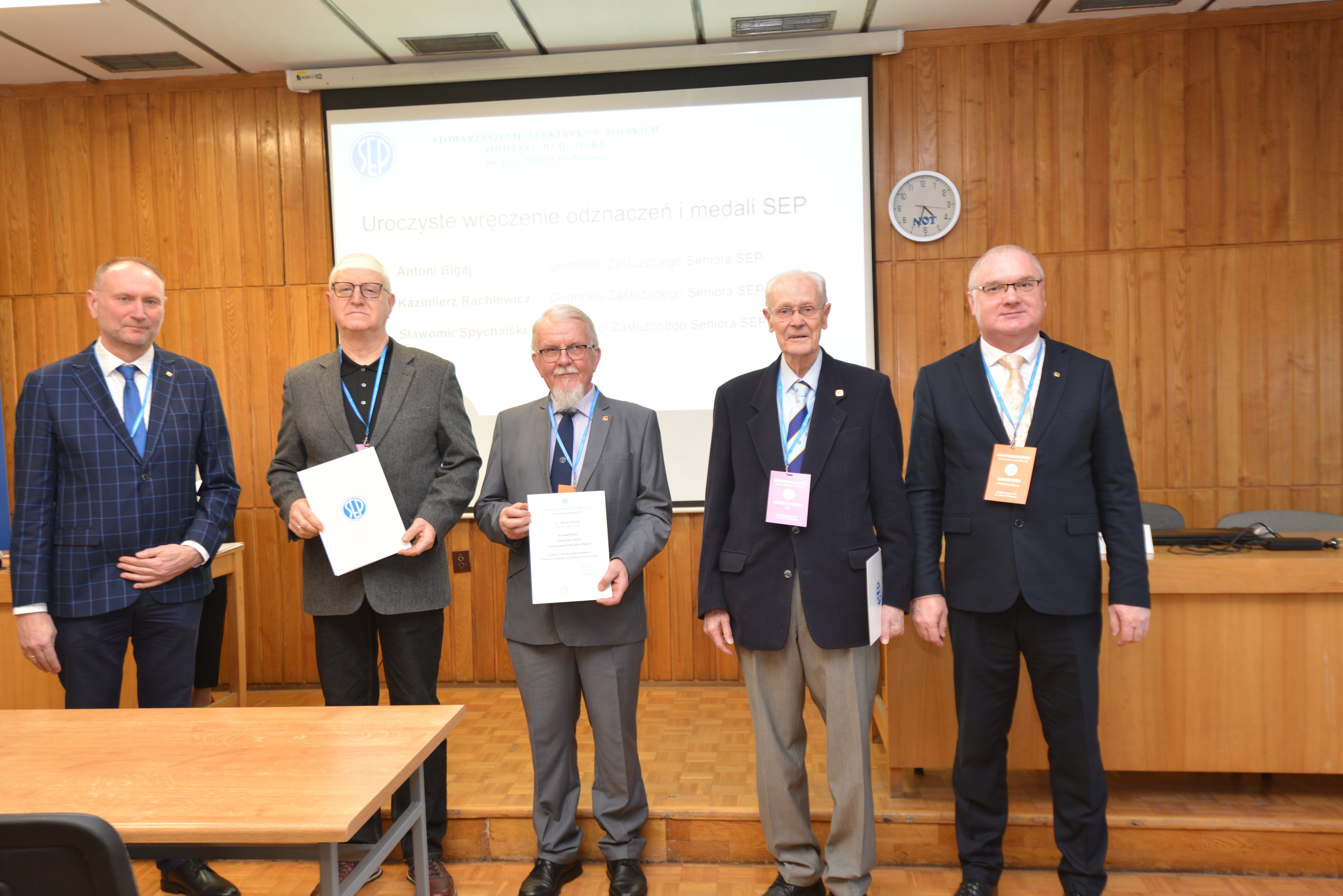 Wyróżnieni Godnością Zasłużonego Senora SEP w towarzystwie Prezesa Pawła Balińskiego i Prezesa ZG Sławomira Cieślika
