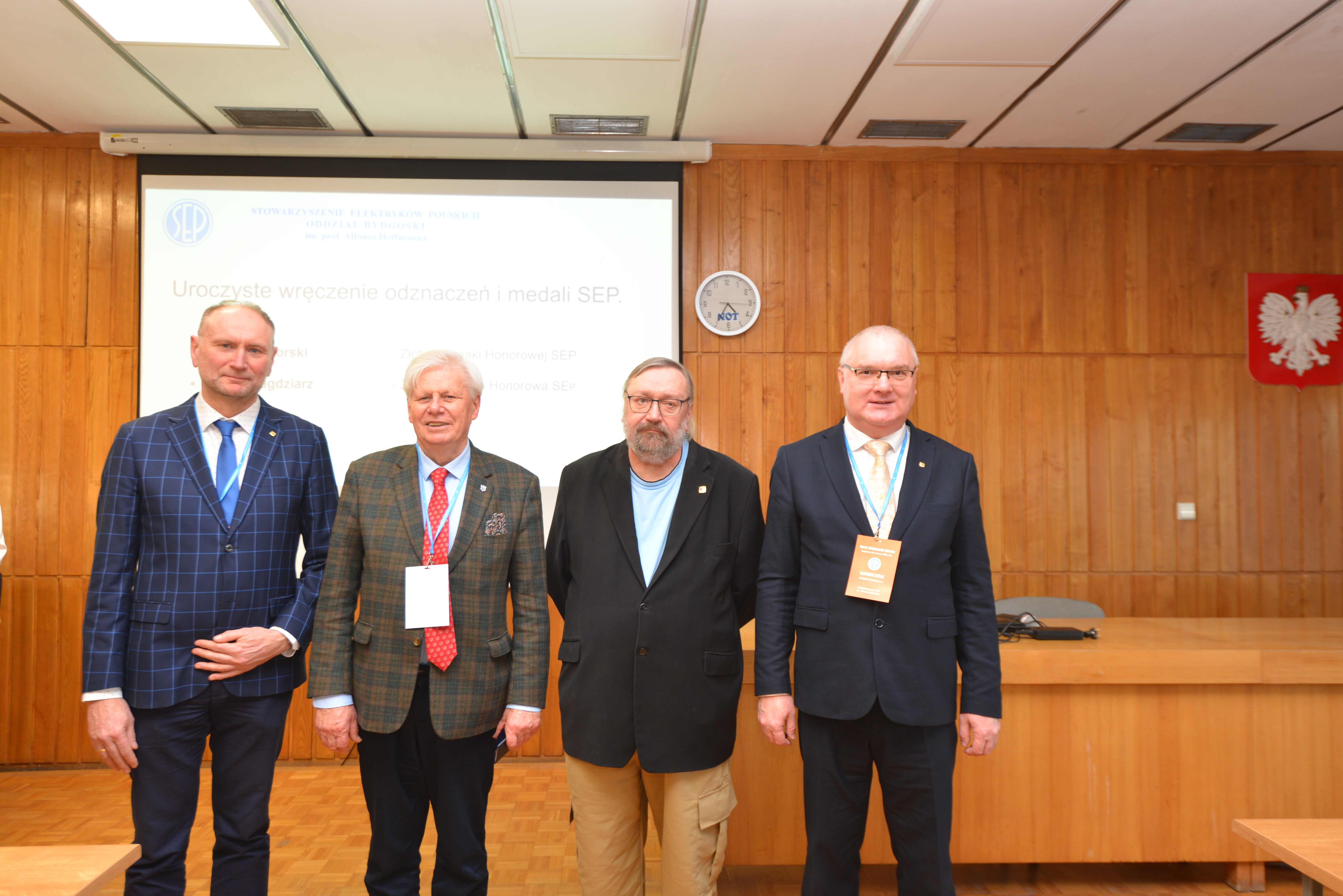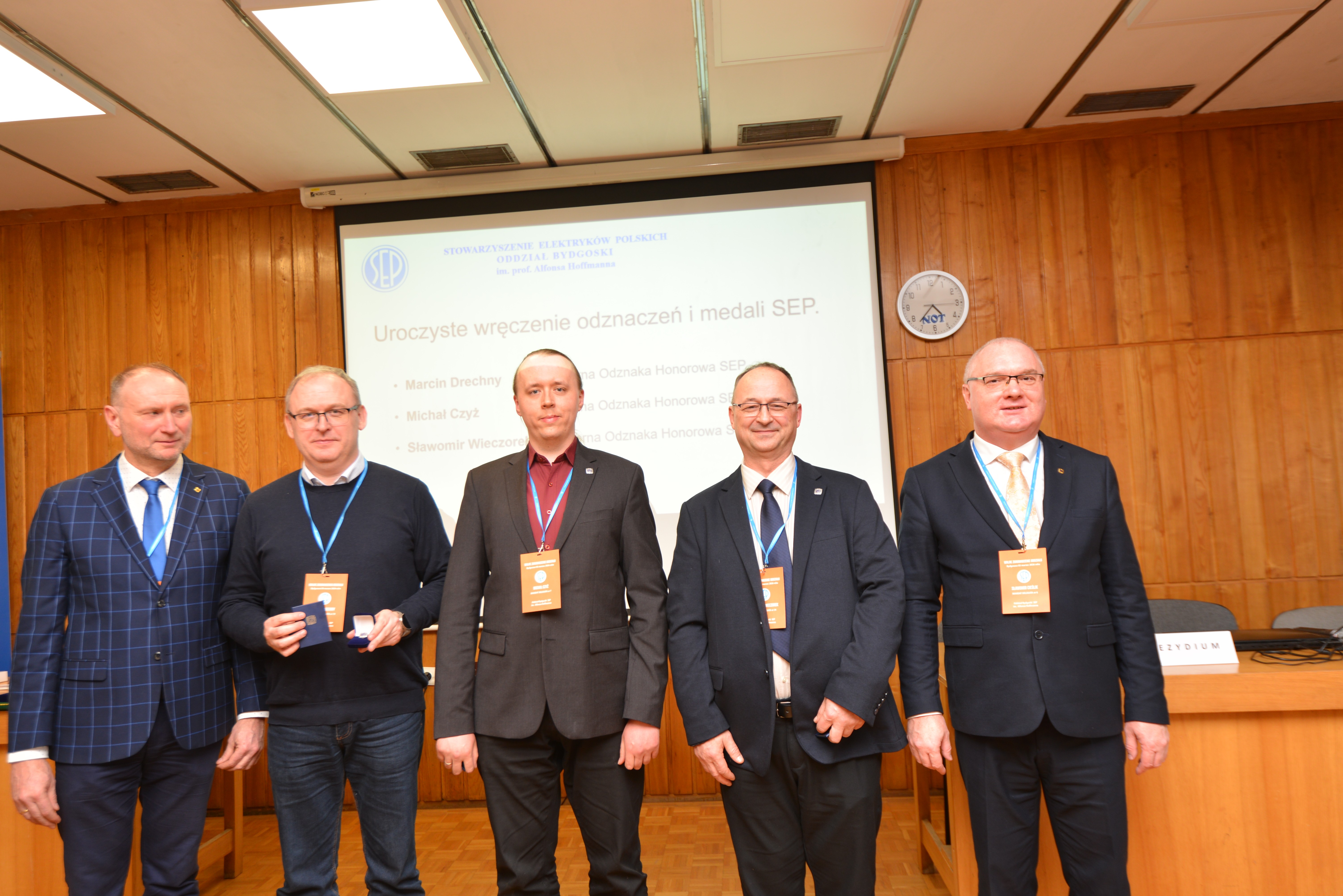 Wyróżnieni Złotą Honorową Odznaką SEP w Towarzystwie Prezesa Pawła Balińskiego i Prezesa ZG Sławomira Cieślika